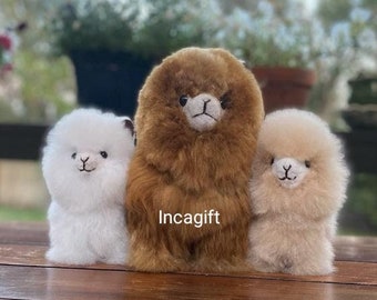Handmade Baby Alpaca Fur Stuffed Animal: Plush Alpaca Llama Toy (7-10 inch)